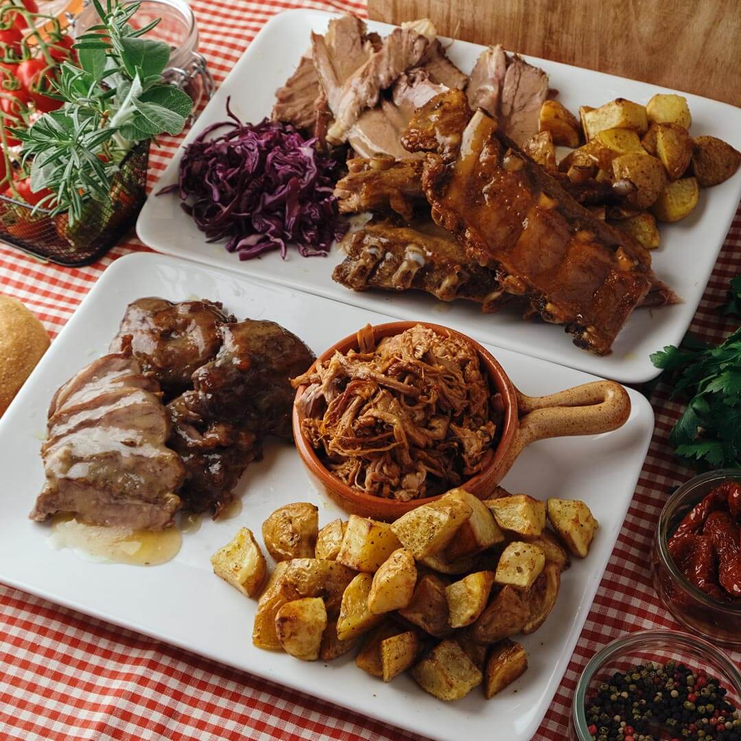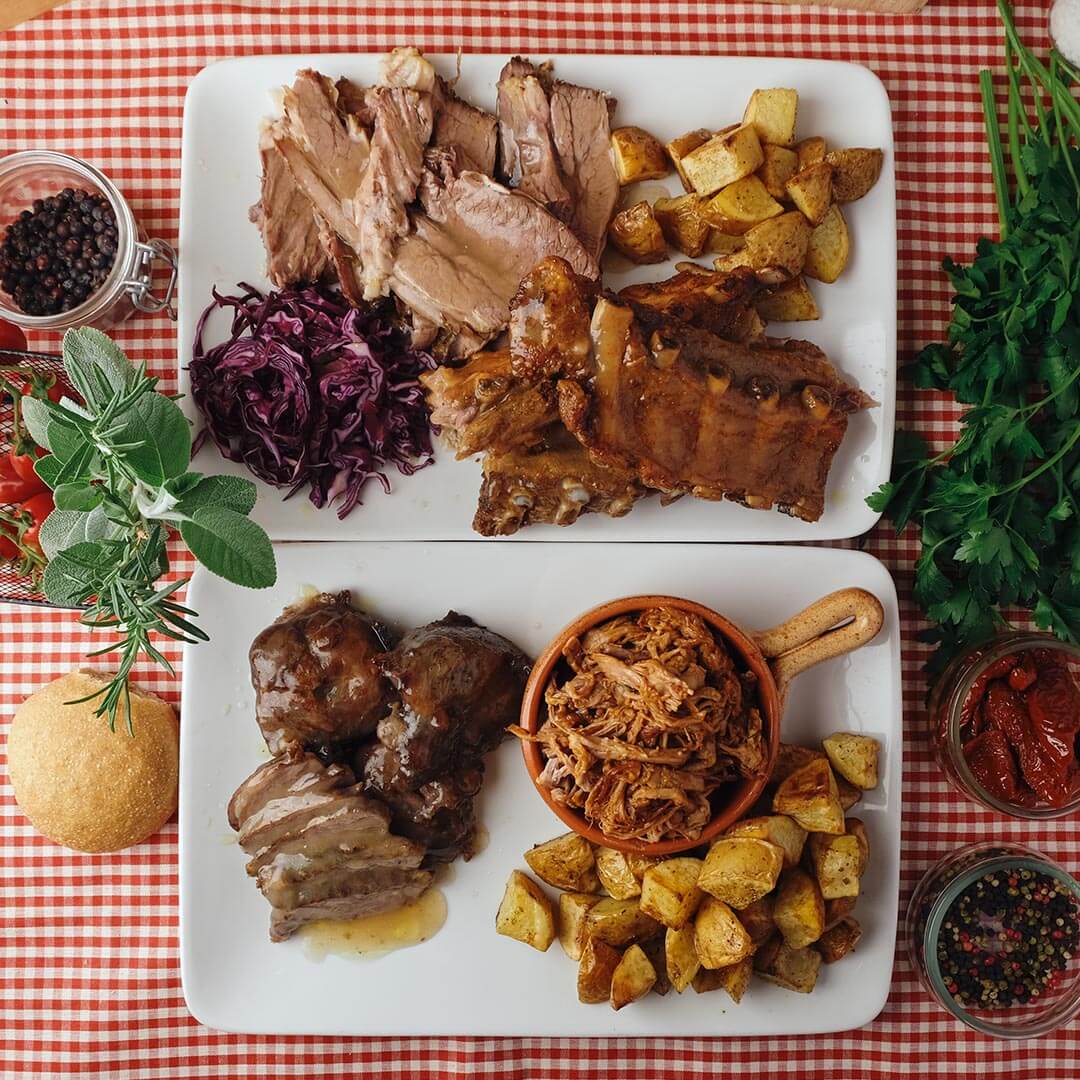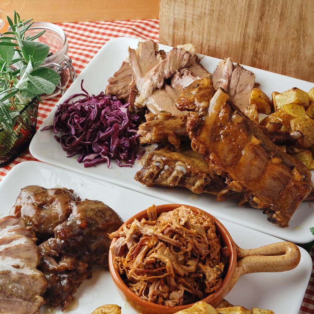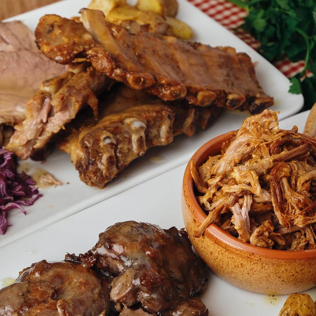 Contenuto box: guanciali, costine, costato di manzo cbt , maiale sfilacciato.